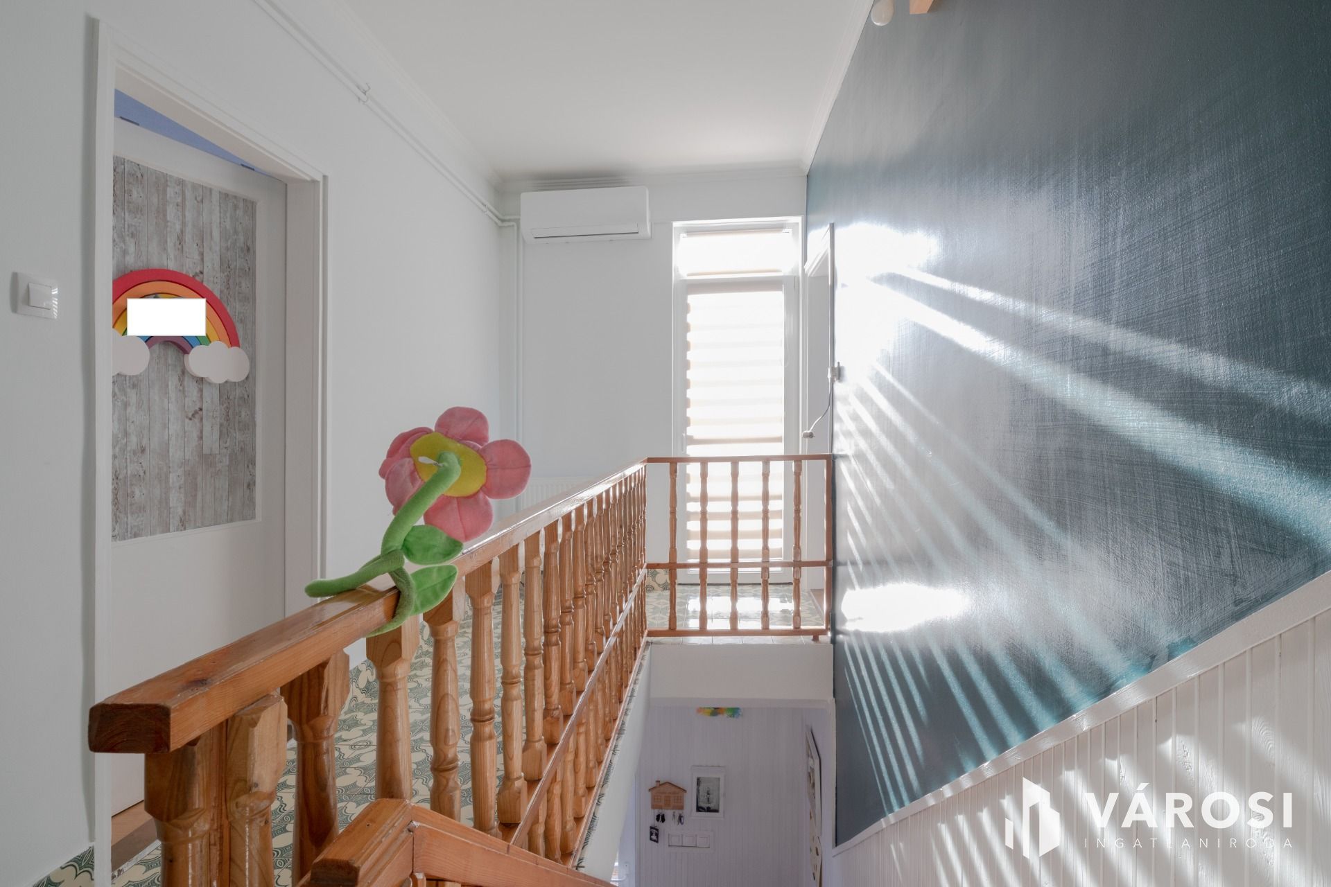 A ház két szinten helyezkedik el, részben felújított állapotban várja új tulajdonosait. Az alsó szinten egy tágas nappali található, amely ideális családi lakótér, emellett két kényelmes hálószoba biztosítja a pihenést. Az ingatlan külön fürdőszobával és WC-vel rendelkezik, ami a mindennapok kényelmét szolgálja.