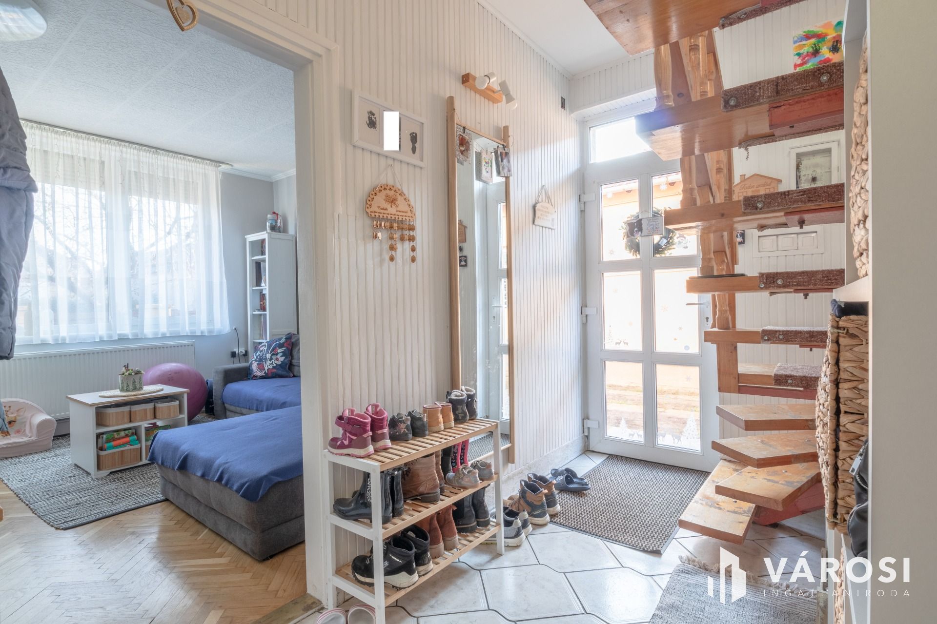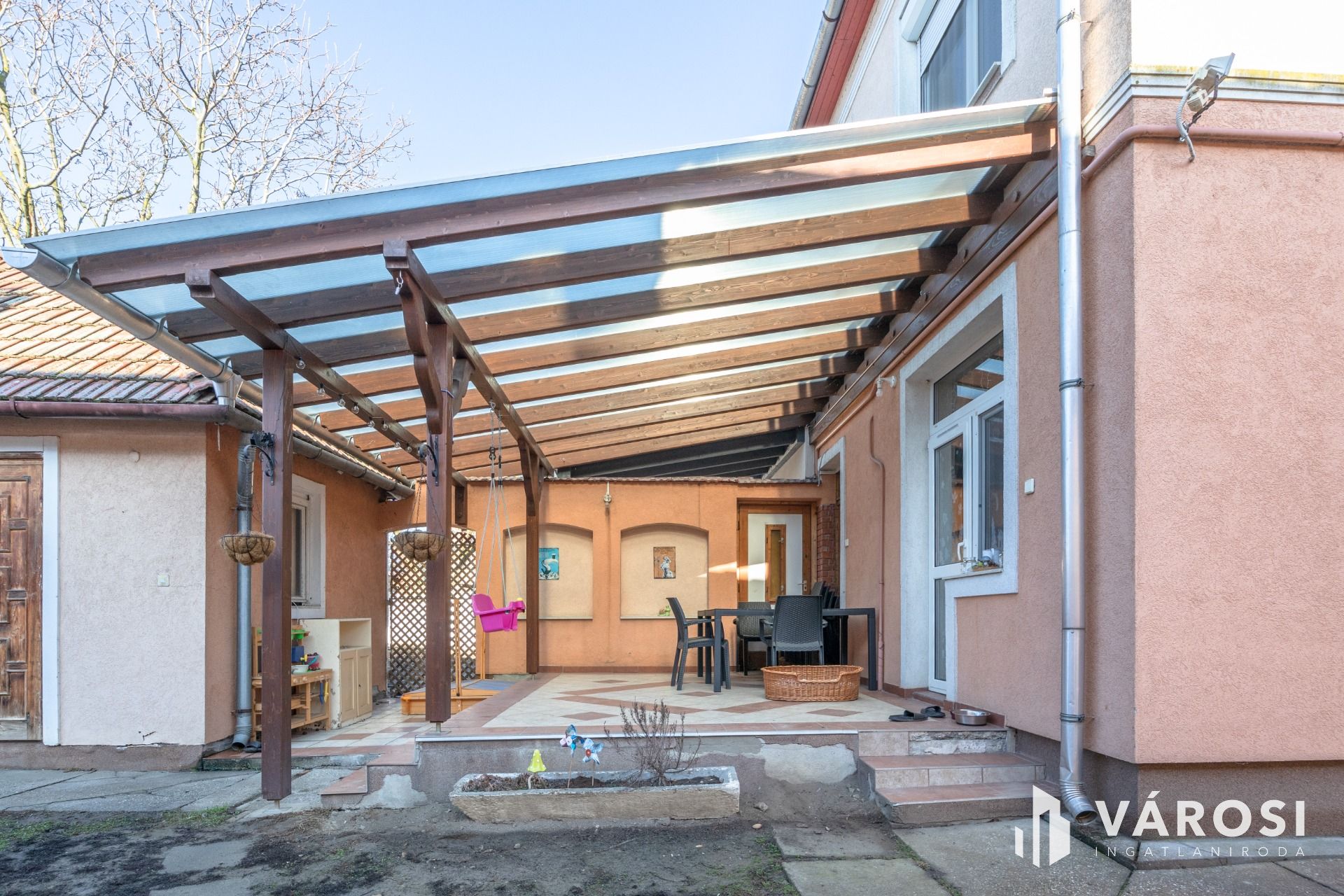 A házhoz tartozik egy hangulatos terasz, ahol élvezheti a zöld övezet nyugalmát. A melléképület további tárolási lehetőséget kínál, tágas garázzsal, a fúrt kút pedig a kert gondozását könnyíti meg. Az ingatlan elhelyezkedése kiváló: csendes utca, mégis jó közlekedési lehetőségekkel.