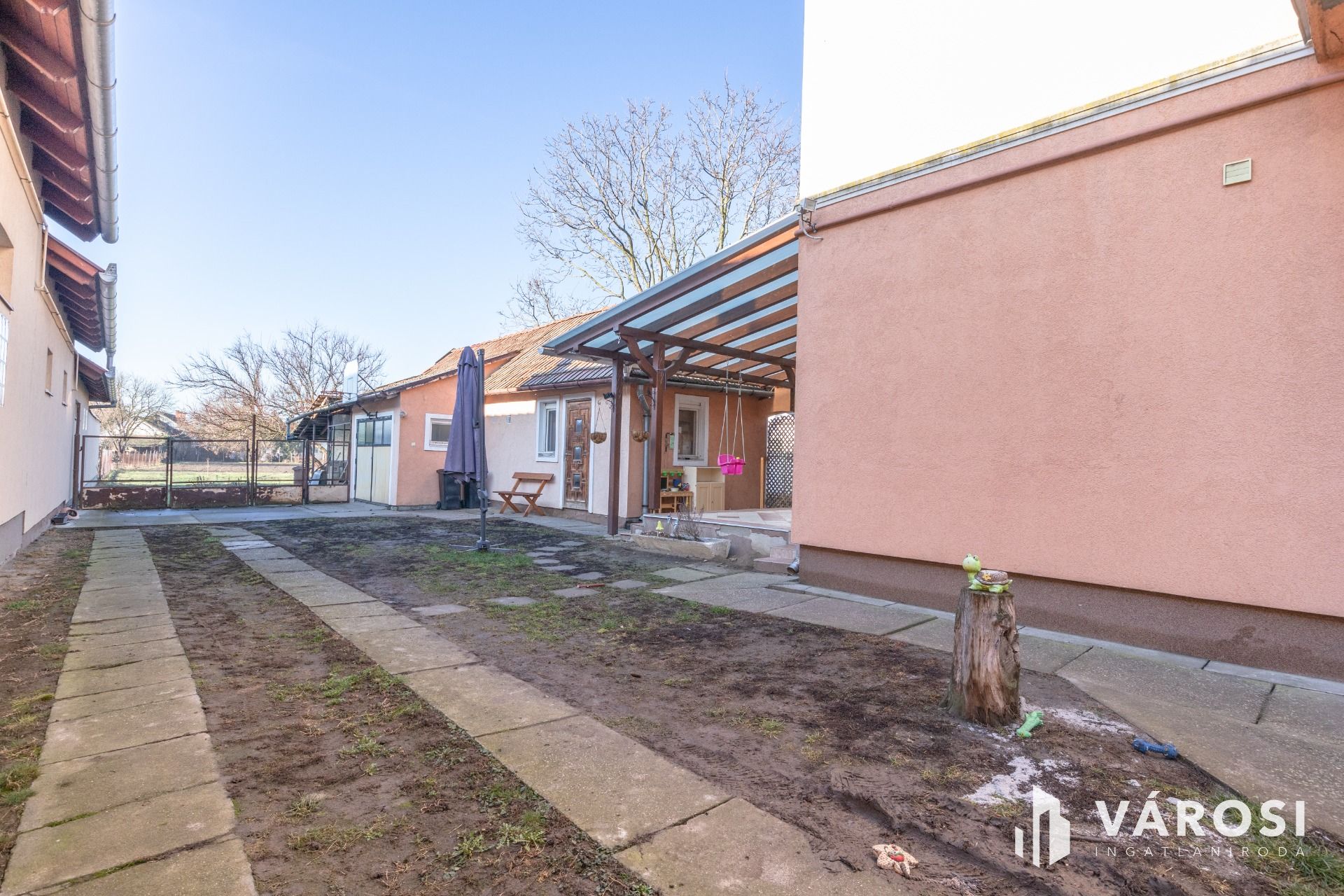 Eladó Algyőn egy kivételes ikerház, amely tökéletes otthont nyújt azoknak, akik csendes, zöld környezetben szeretnének élni, miközben a városközpont közelségét is élvezhetik. Az ingatlan 93 m²-es lakóterülettel rendelkezik, és 824 m²-es telek tartozik hozzá.