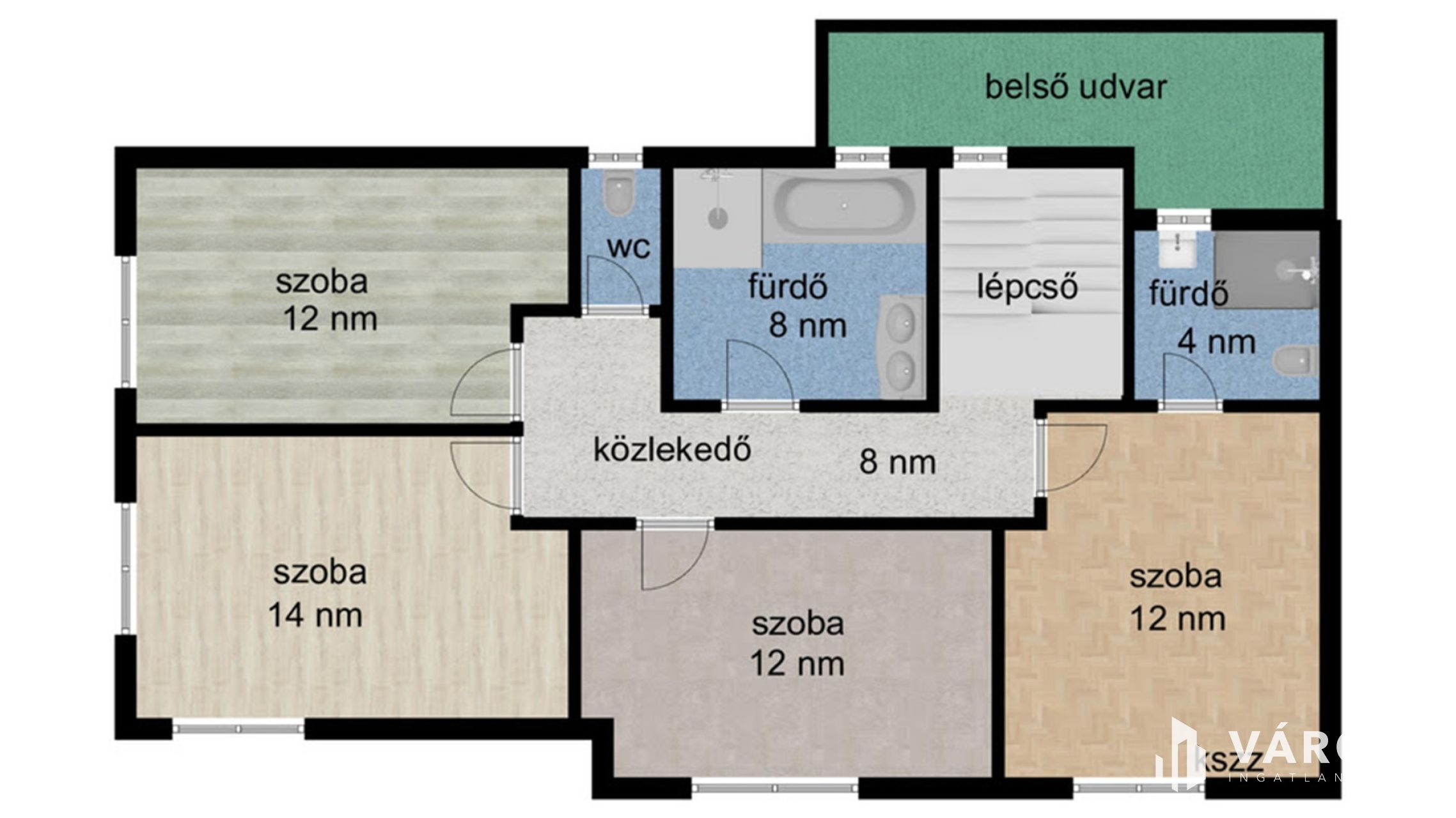 - 164 nm lakótér + 24 nm-es terasz, 8,7 nm patió.