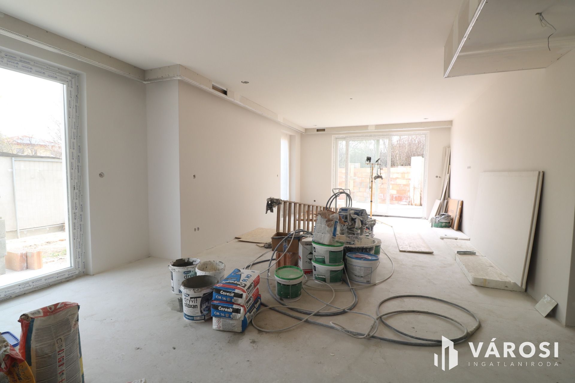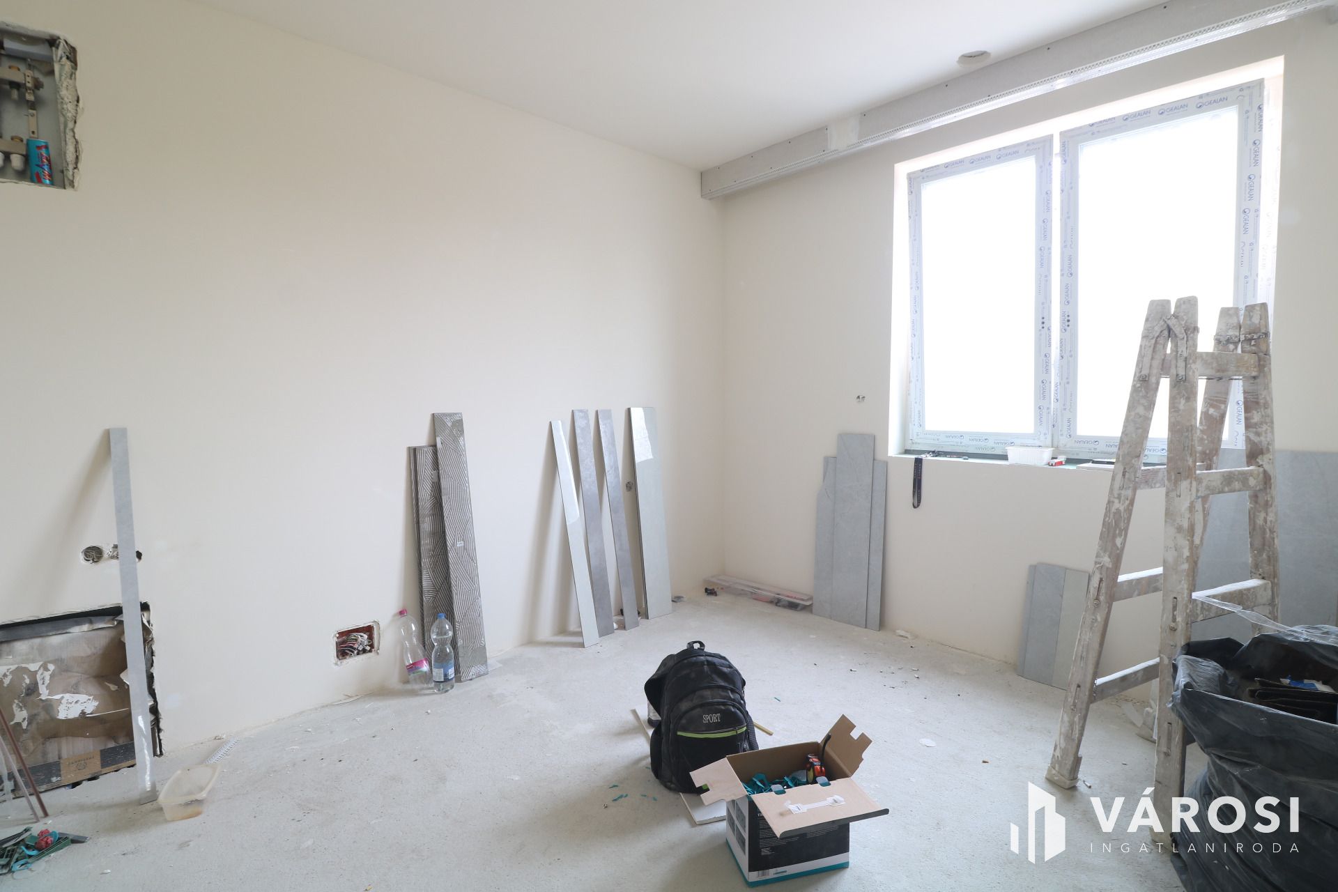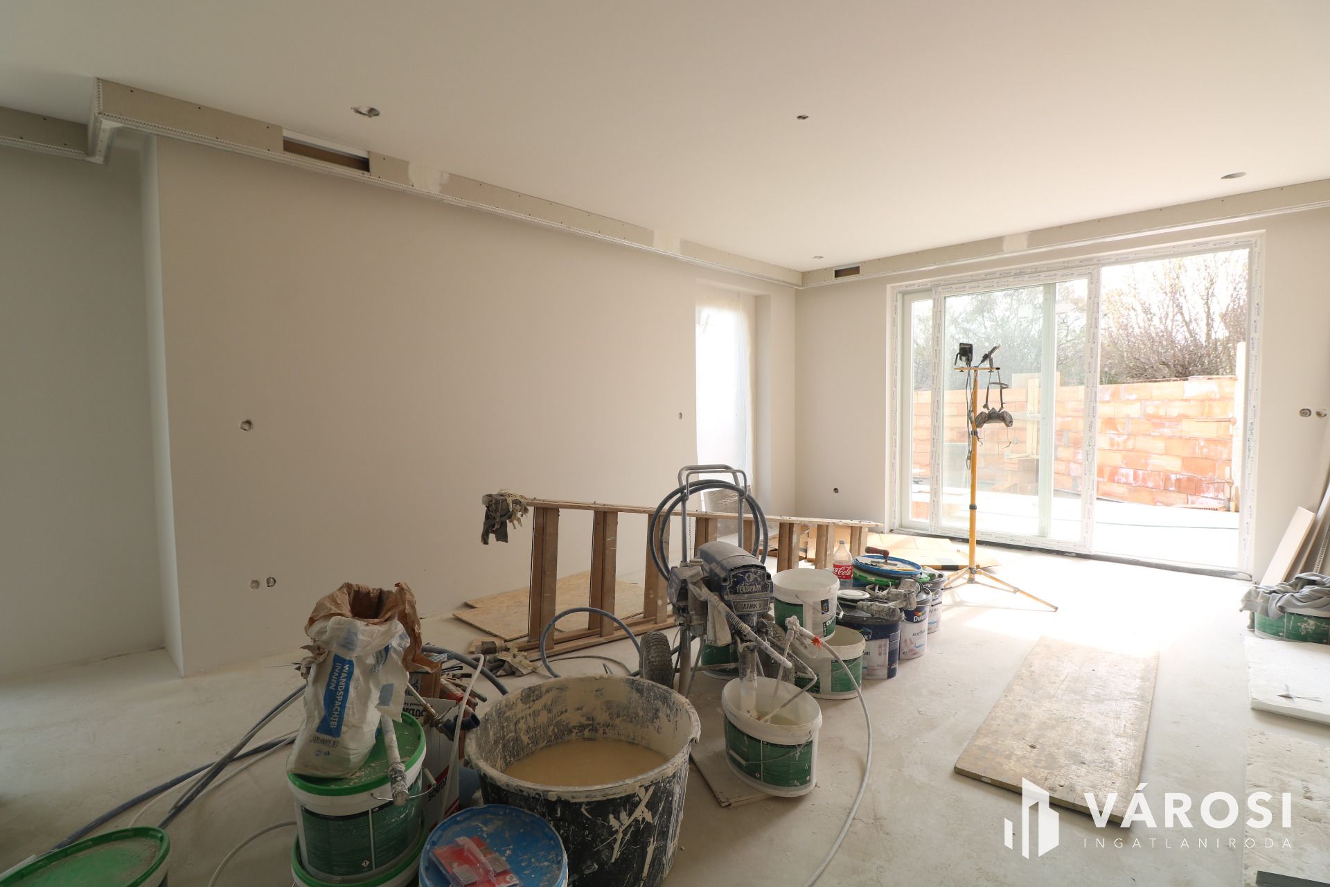- Glettelt falak, dugaljak, kapcsolók, lámpatestek felszerelve.