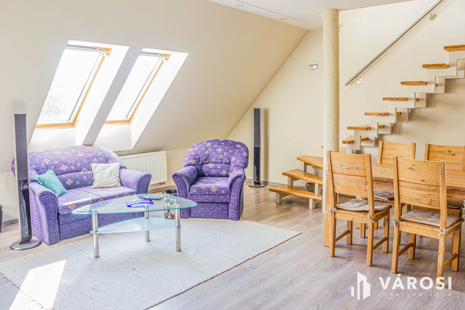 A sok ablaknak és tetőtérnek köszönhetően nagyon világos, napsütötte hangulatos lakásról van szó.