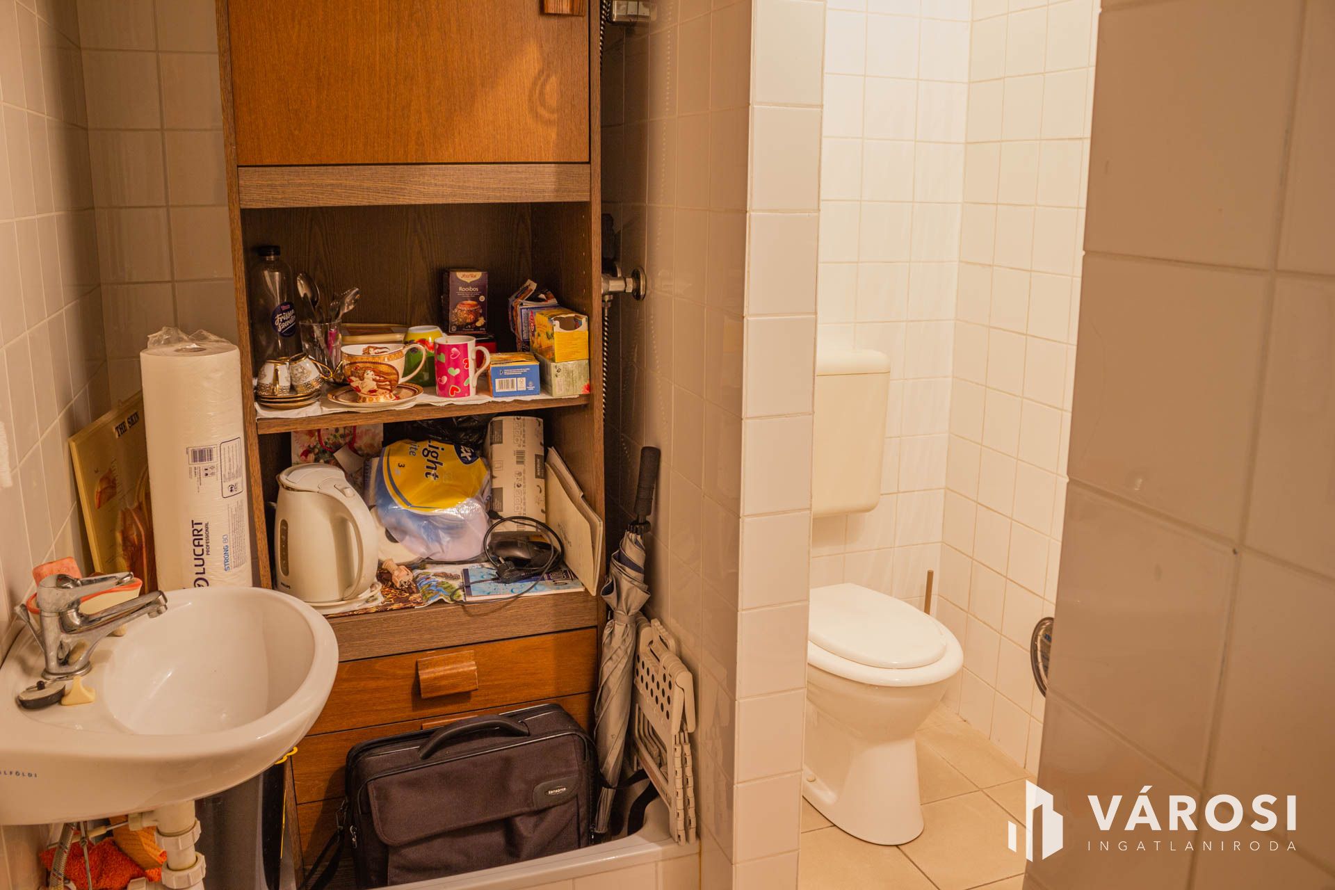 Tartozik hozzá a folyosóról megközelíthető zárható külön helyiség, ahol egy másik wc is kialakításra került. Tárolóként vagy mosókonyhaként is használható.