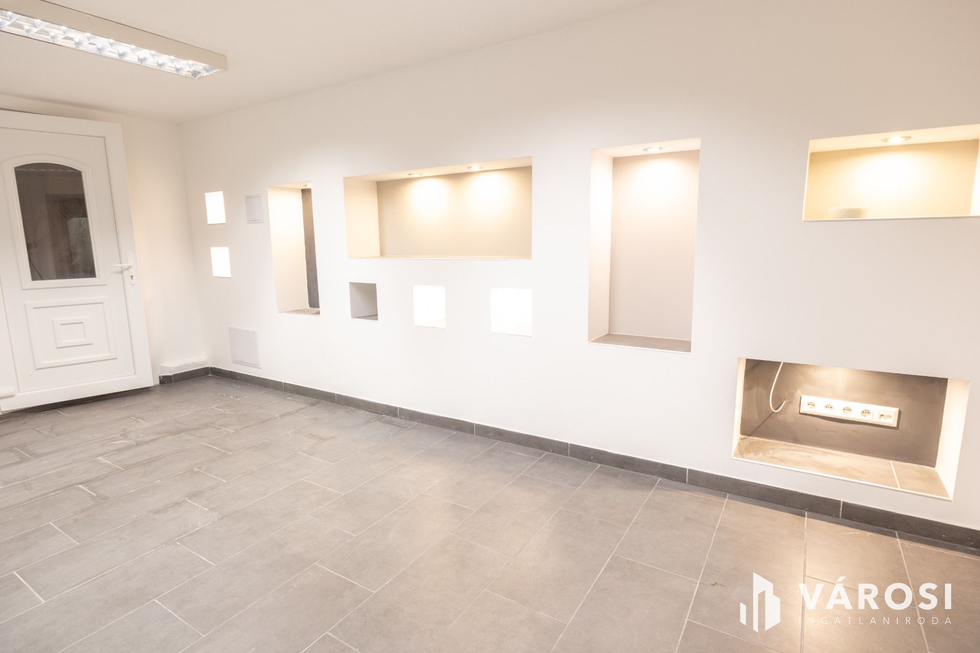 Gipszkarton polcai dekor világítással szereltek, így akár irodának is lehet használni.