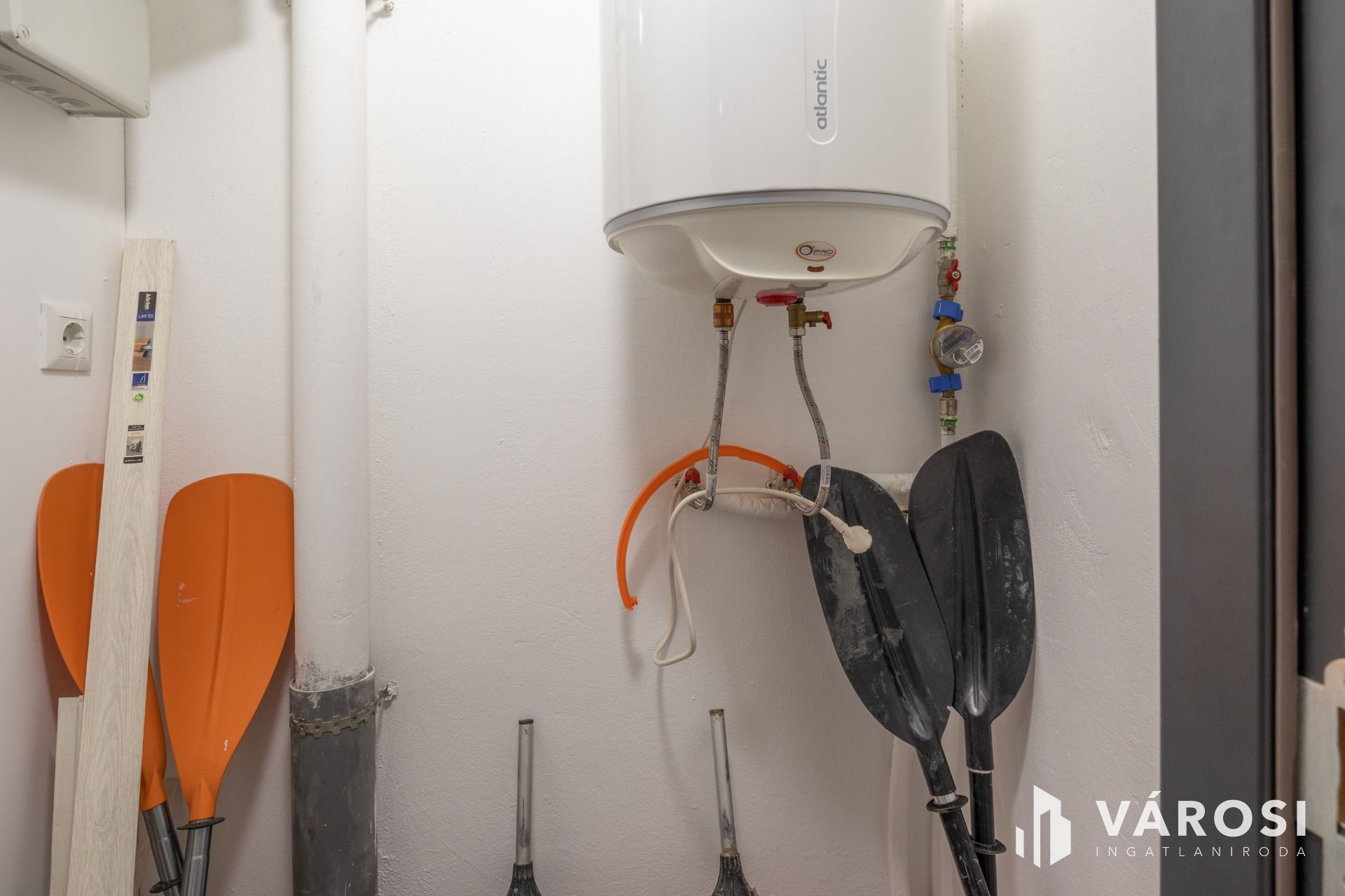 Egy kis tároló is rendelkezésre áll, ahol a villanybojler kapott helyet.