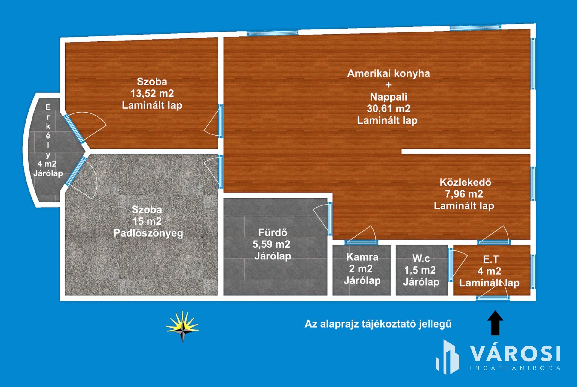 A lakás 1 db amerikai konyhás nappalival, 2 db hálószobával, 1 db fürdőszobával, külön Wc-vel, kamrával, közlekedővel, erkéllyel rendelkezik. Az ingatlan elhelyezkedésre, kialakítása miatt, maximálisan kiemeli ezt az ingatlant az átlagos társasházi lakások sorából és egyedülálló választássá teszi azt. További előny, hogy az eladó 2018 - ban kicserélte a nappaliban és a szobákban, valamint az előtérben és közlekedőben a burkolatokat. És az ingatlan legutolsó esztétikai felújítása 2022-ben volt.