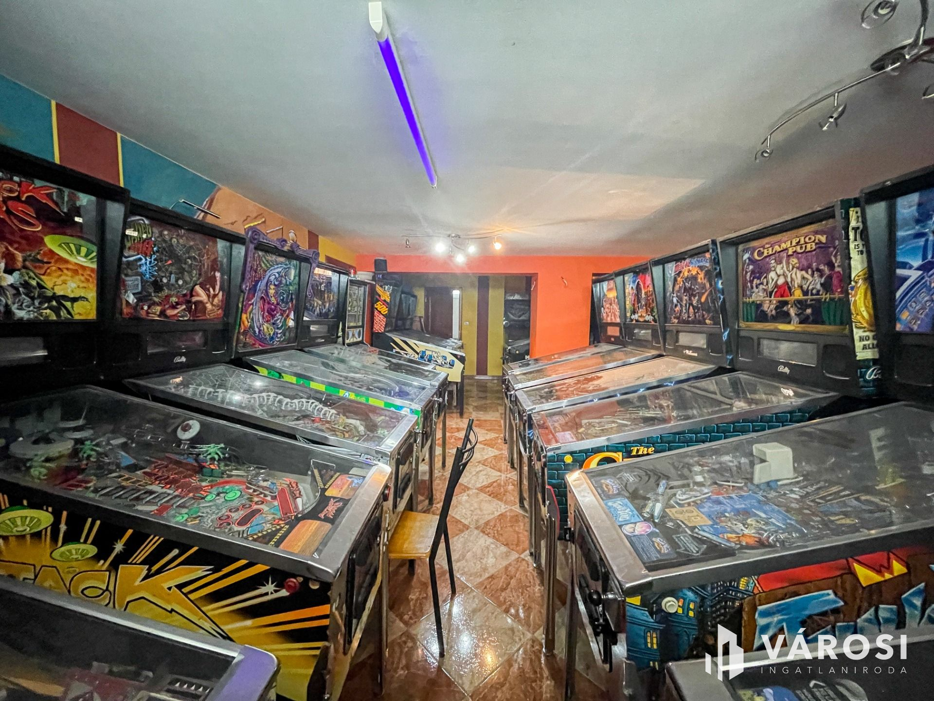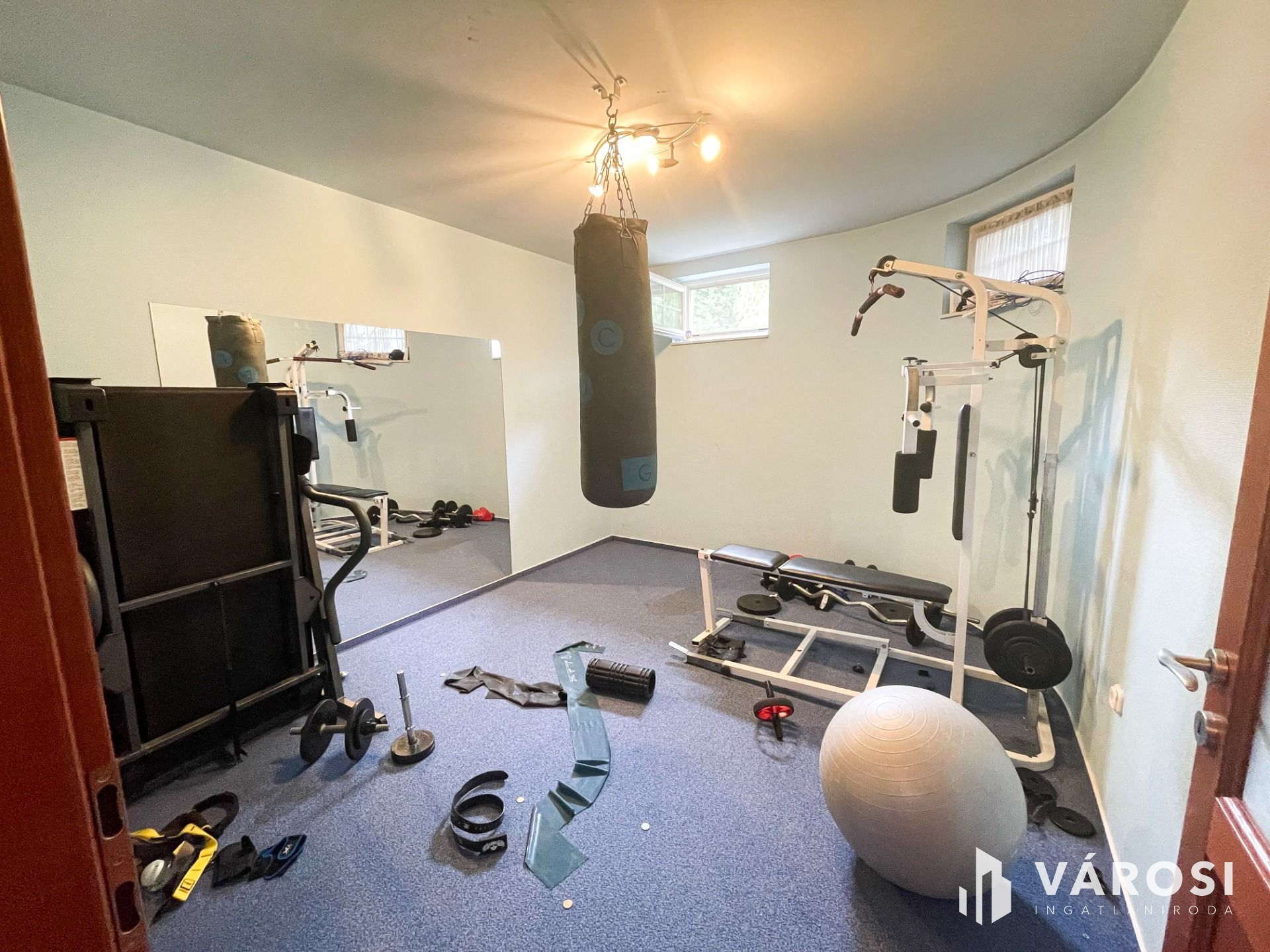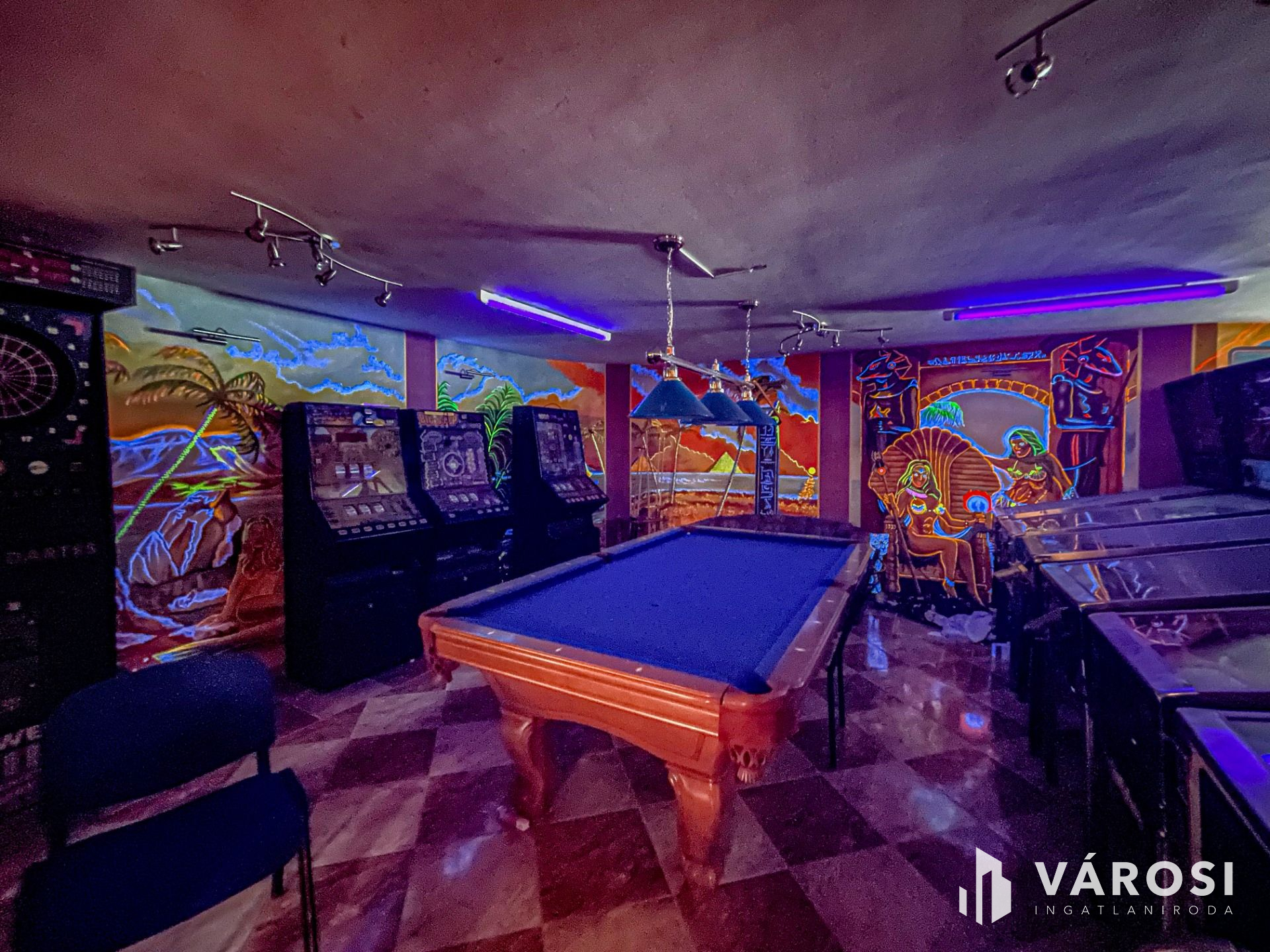 Az alagsorban konditerem, mosókonyha, kamra, gépház, 1 szoba és játékterem billiárdasztallal, UV falfestménnyel, mosdó wc-vel került kialakításra.