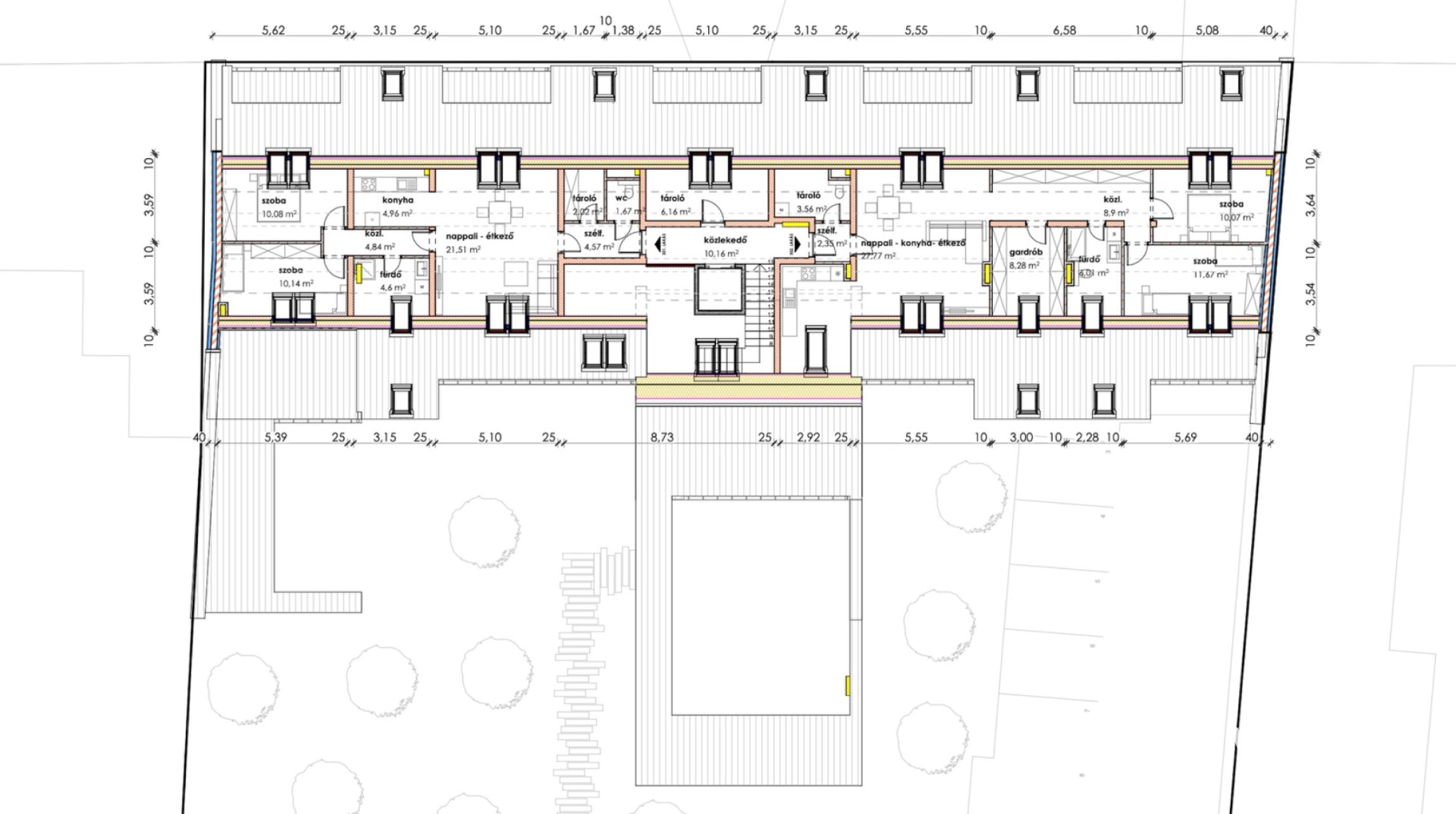Makón, presztizs lokációval rendelkező - Makói fürdőtől 30 méterre - a Szent János téren - A Napfény Residenceben - , Eladó egy most induló, tégla építésű, HARMADIK EMELETI , 78,61 nm-es élettérrel rendelkező, amerikai konyha nappali plusz három szobás lakás (302.lakás), liftes házban.
