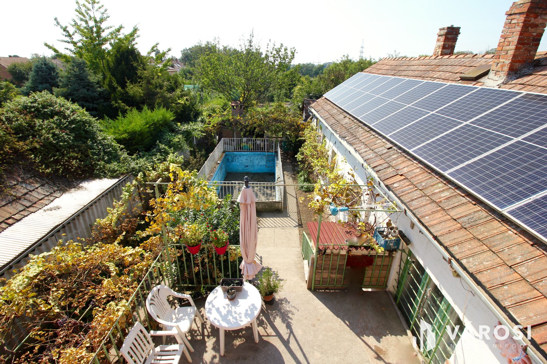 A remek tájolású udvaron, medencét, sütögető teraszt kemencével, lekerített gyümölcsöst, melléképületet, kiépített kutya kenneleket találunk.