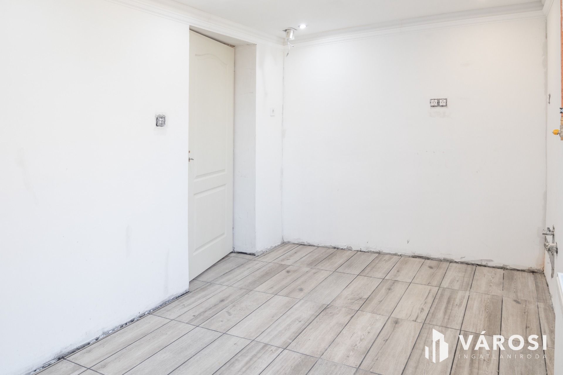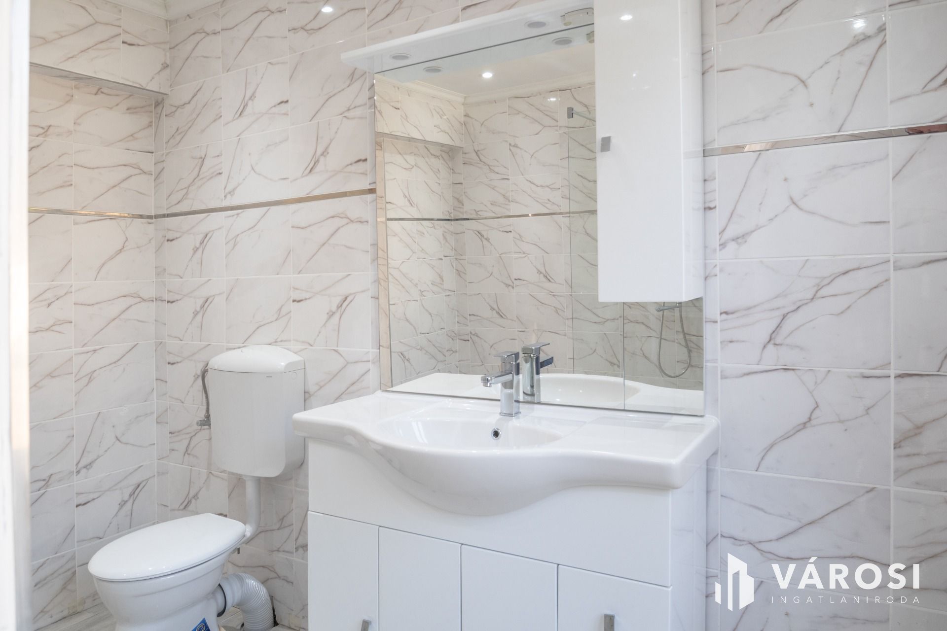 A szoba laminált lappal, a többi helyiség járólappal borított, álmennyezetben LED világítás lett beépítve.