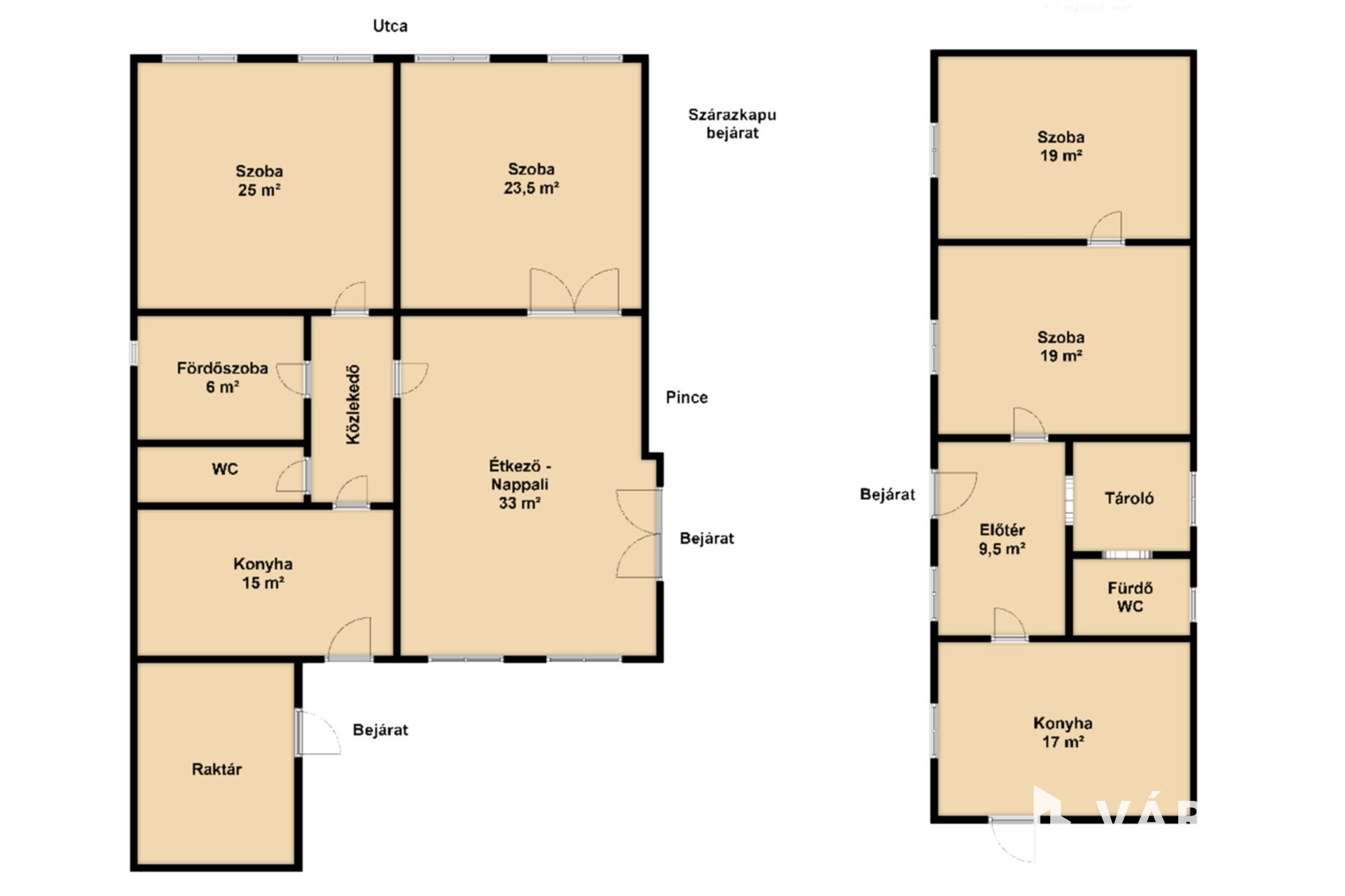 Az udvaron belül kettő ház helyezkedik el 1154 m²-es telken.