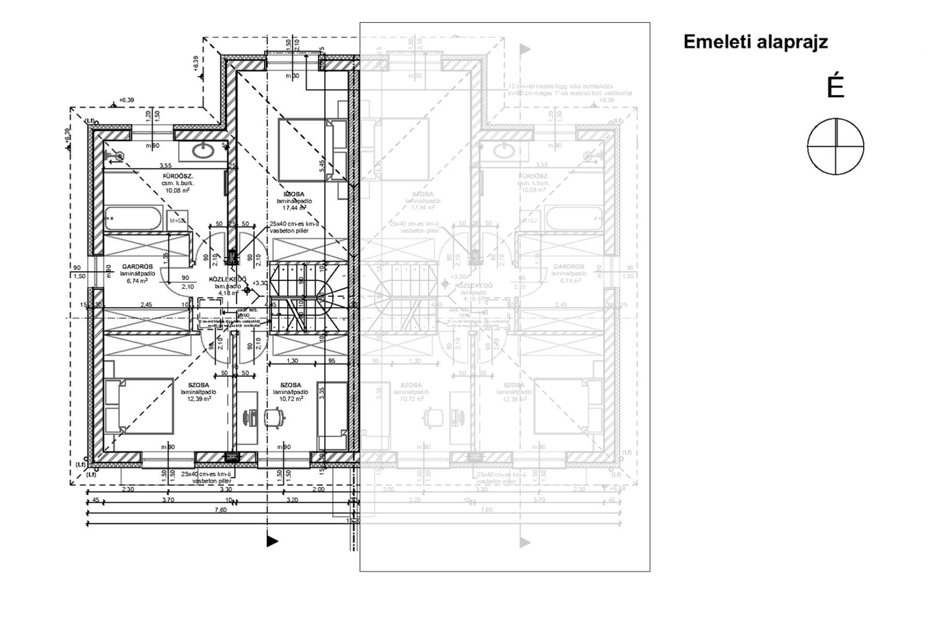 A teljes értékű kétszintes (nem tetőtéri) kialakítású, saját személyi és utcai garázs bejáróval rendelkező házrész önállóan megvásárolható, Az ingatlanhoz 360,5 m² udvarrész tartozik, itt akár 25 m² beépíthetőséggel melléképület kialakítható.