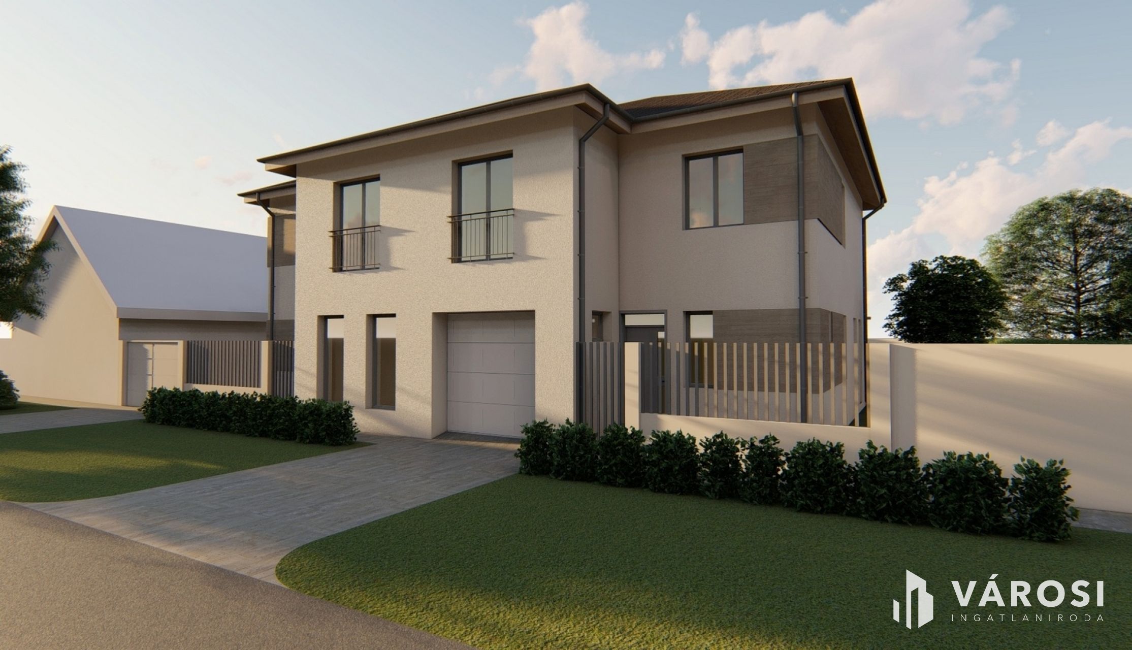 Eladó újépítésű, kulcsrakész kivitelezésű ikerház „Borostyán” házrésze. Az ikerház a közös fal kivételével, mint két szomszédos ház funkcionál, mindkét rész saját utcafronttal és udvarral rendelkezik.
