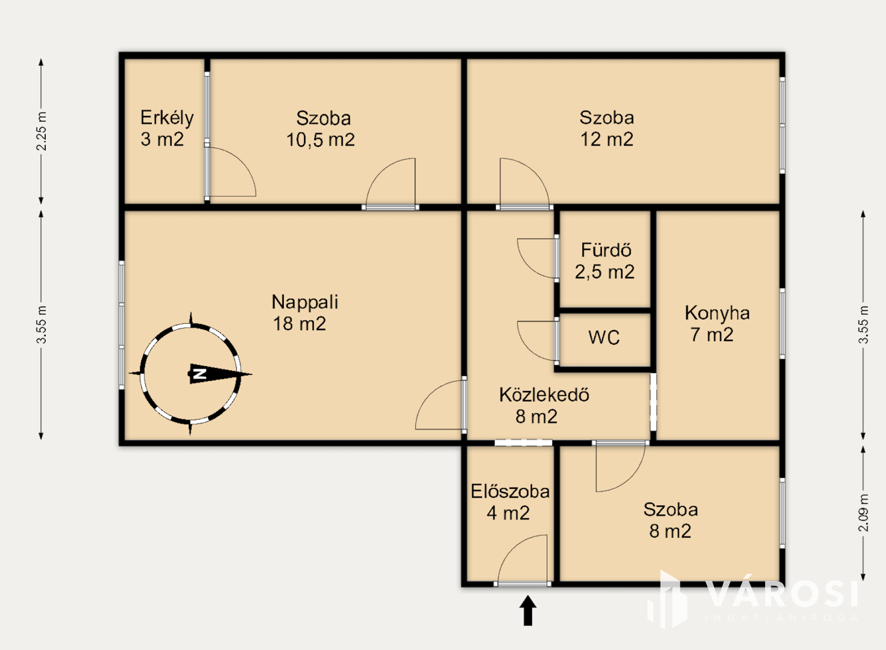 A nagy alapterületnek és a 3 külön szobának köszönhetően a család minden tagjának nyugalmat és külön életteret biztosít.