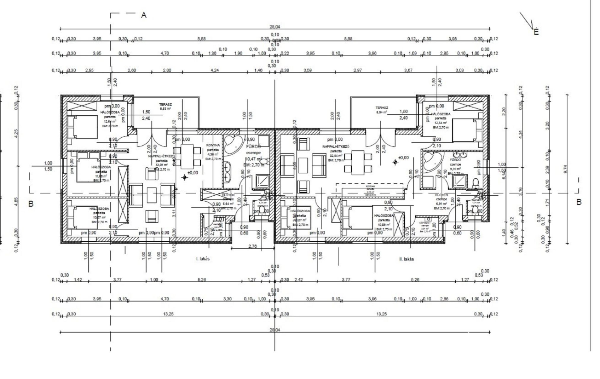 Az eladó lakás 112 nm bruttó alapterületű, nettó lakótere közel 90 nm, amely egy szinten helyezkedik el. A belső elrendezés praktikus és családbarát: egy tágas, közel 32 nm-es nappali–étkező, külön konyha, három hálószoba, fürdőszoba, külön WC, előtér és gépház kerül kialakításra. A nappali nagy üvegfelületei világos, élhető teret biztosítanak, és közvetlen kapcsolatot teremtenek a kerttel és a panorámás környezettel.