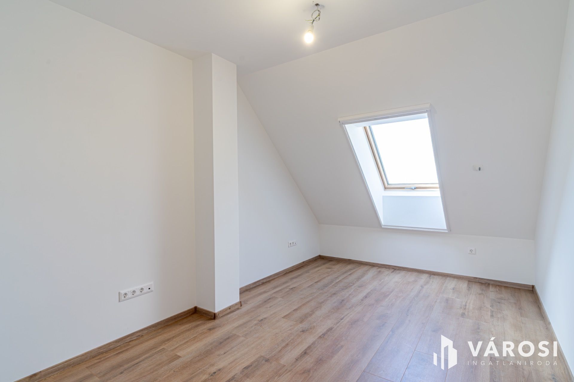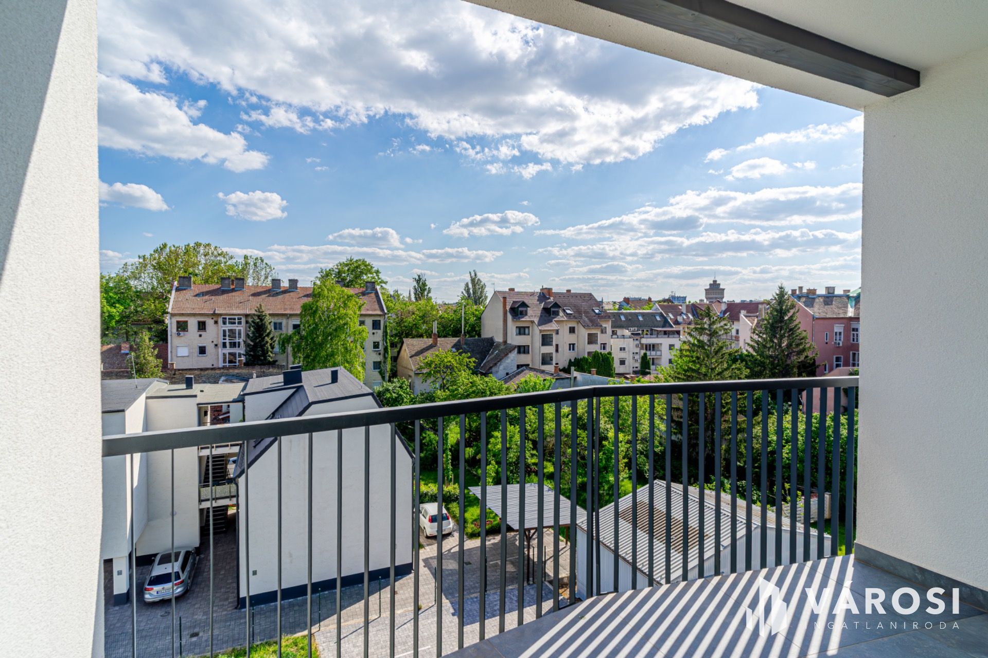 Szeged Belváros városrészének szélén, eladó egy új építésű, Nettó 110 nm-es élettérrel rendelkező, tégla építésű, amerikai konyhás nappali plusz három szobás, fürdős, külön Wc-s, penthouse jellegű lakás, amihez, egy 13 nm.-es fedett fénycsatornával is ellátott terasz is jár hozzá. A lakáshoz kocsibeálló vagy garázs külön vásárolható hozzá.