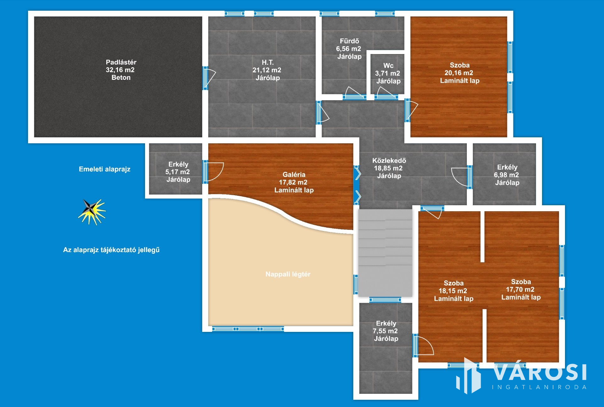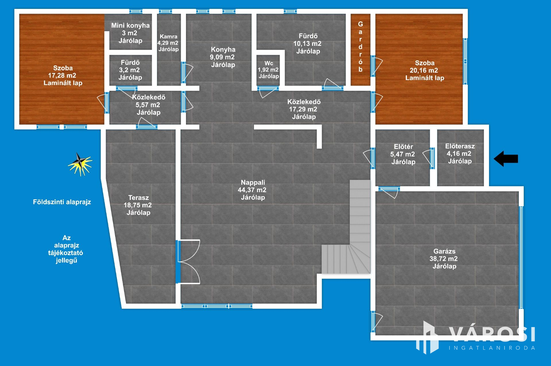 A ház 5 db hálószobával, 1 db " egy szemmel alig látható" 45 négyzetméteres nappalival, 2 db konyhával ,3 db fürdőszobával, 2 db külön Wc-vel,, és erkélyekkel, terasszal, valamint gardróbbal, és előtér közlekedőkkel, és háztartási helyiséggel (ezek mellett számtalan funkcióval) rendelkezik. A lakás központi része a nappali, ahonnan könnyedén kijutunk a hangulatos teraszon keresztül növények sokaságában pompázó kertbe. Az ingatlan elhelyezkedésre, minősége, kialakítása miatt rendkívül sokrétű a felhasználása - akár lakás, vagy befektetési célra -, amely maximálisan kiemeli ezt az ingatlant az átlagos házak sorából és egyedülálló választássá teszi azt.