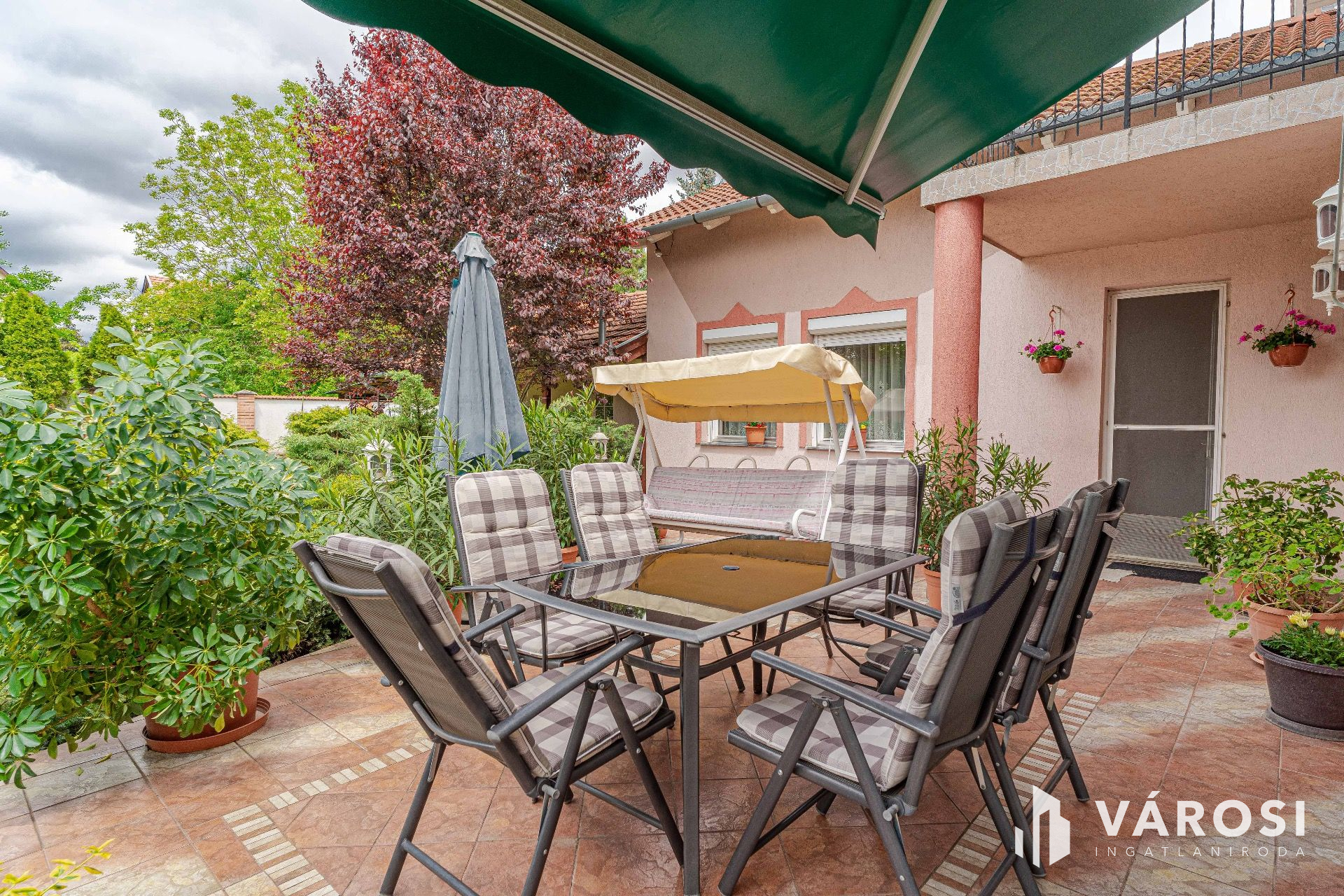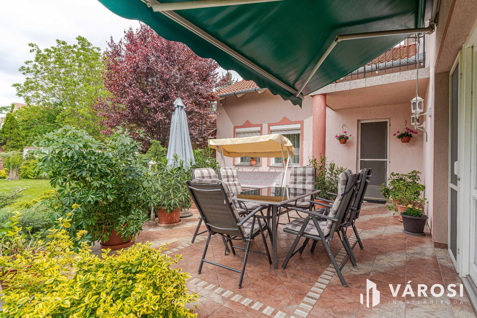 Szeged Újszeged városrészében, eladó ez a 2002-ben épült, Jó adottságokkal, 10 kw os napelem rendszerrel rendelkező, belső szintes 314 négyzetméteres élettérrel rendelkező, galériás nappali plusz öt szobás, dupla konyhás, tripla fürdős, délkeleti fekvésű napfényes, tégla építésű ház, melyez egy dupla garázs és egy tökéletesen karban tartott 919 m2 es telek is jár hozzá fúr kúttal.