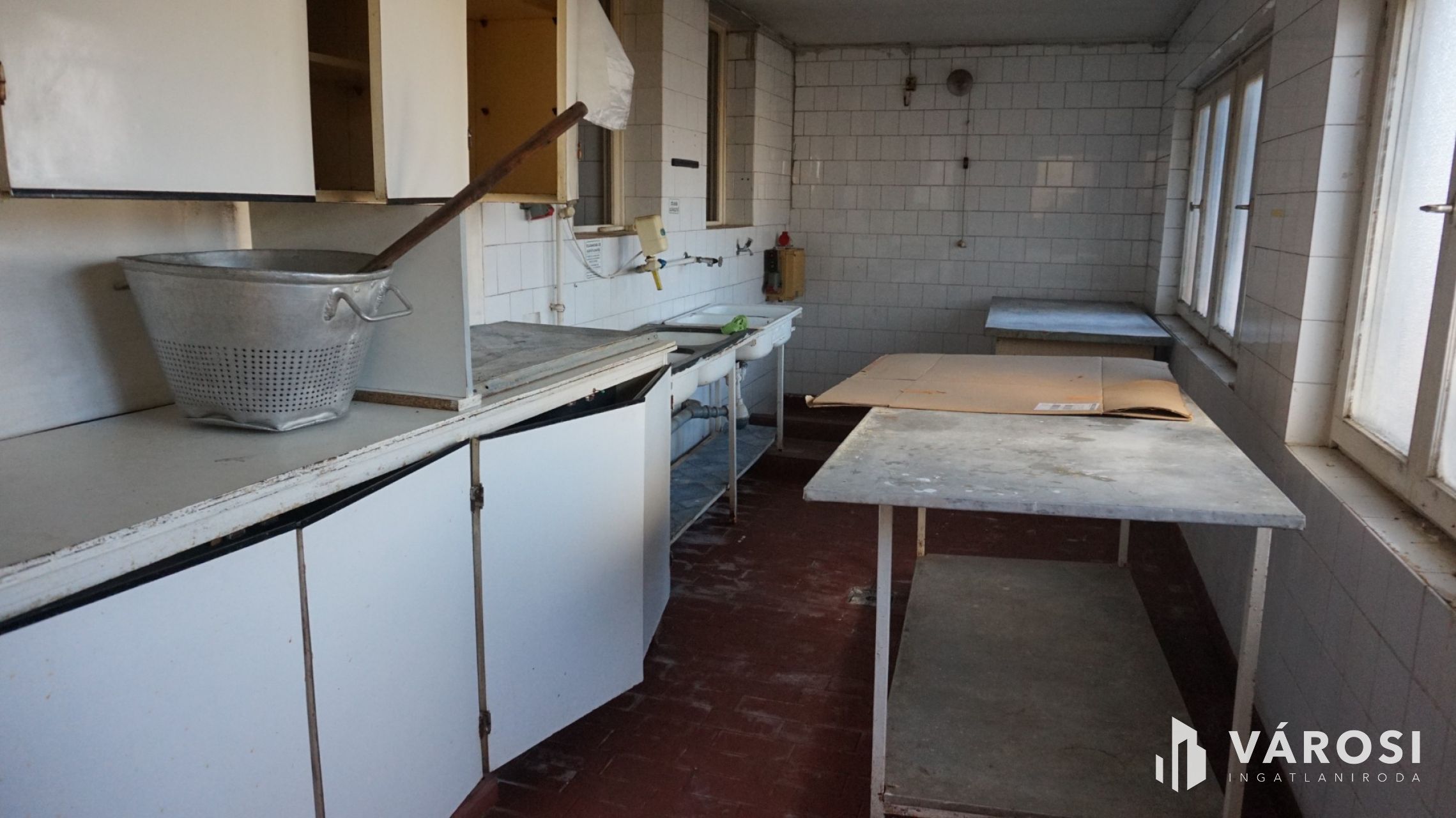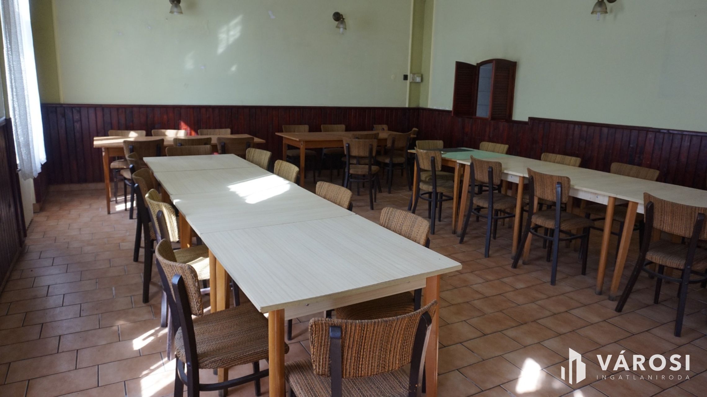 -the larger part of the house is 170 m2, there is a hallway, a spacious reception room, kitchen, sink, men's, women's and staff toilets and a changing room. However, it was downgraded to a residential building a few years ago, so after some renovations, it can be a comfortable home for up to 2 families (according to the current land registry, the entire property is "Exempt residential building, yard, farm building"). There is a dry cellar suitable for storage under the house. In the yard there is a garden kitchen, barbecue, an open and a covered terrace, a warehouse, 2 garages, and a covered carport. If the future owner decides that he wants to open a shop, pizza shop, restaurant, pastry shop, or café, or other community space in the property again, he can easily do so, the conditions are given.