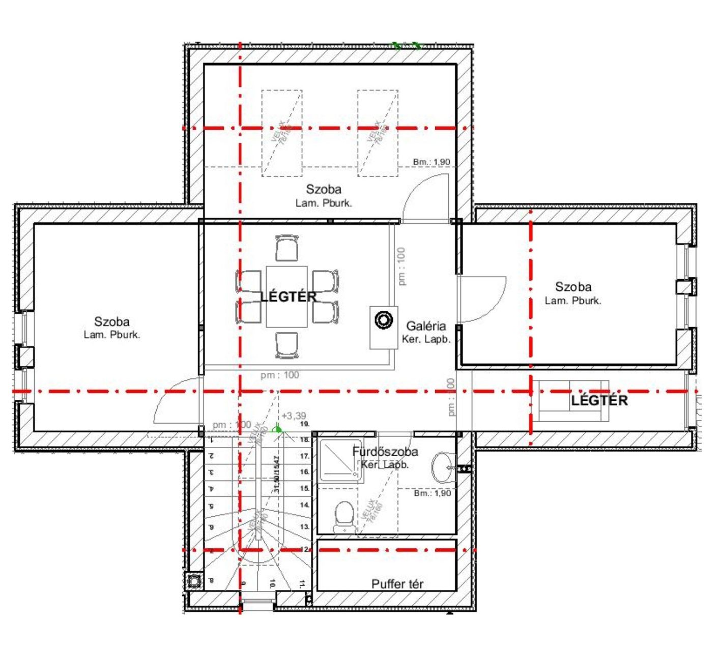 - gáz-cirkó + padló és mennyezetfűtés + vízteres kandalló + napkollektor