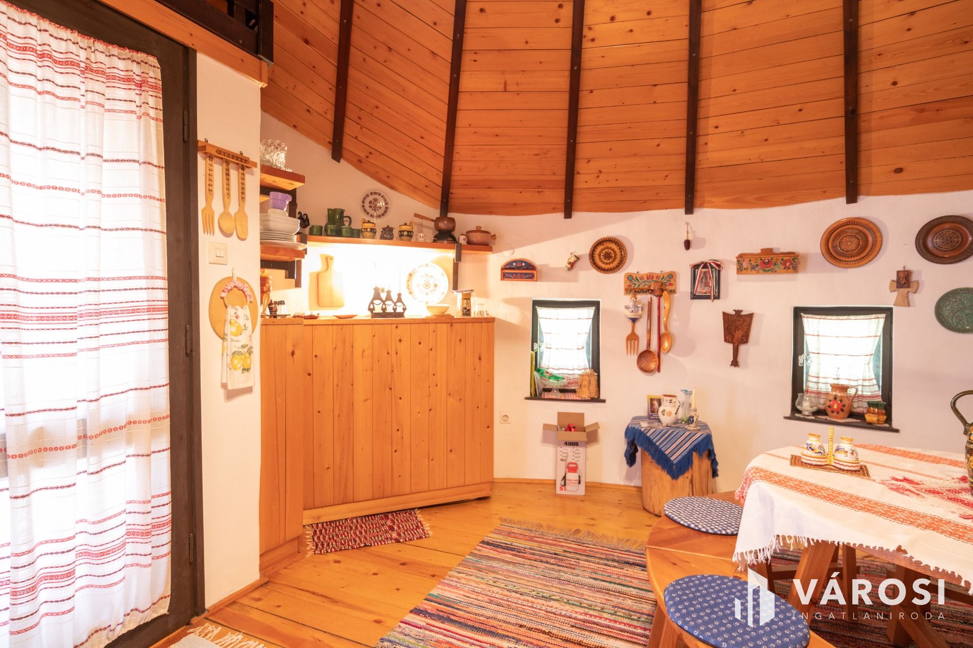 Egy egyedi kivitelezésű '70-es végén Ybl díjas tervező által tervezett 30 m² alapterületű nádfedeles, téglából épült házikó található a telken, amit akár vendégháznak is lehet használni. A szélfogóból belépve egy légtérben egy tágas szoba, ötletes kinyitható konyharésszel, a galérián két fő kényelmesen tud aludni. Fürdőszobában tuskád zuhanyzóval, mosdóval és WC-vel ellátott.
